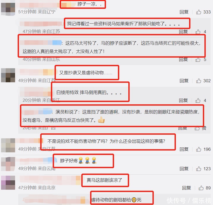 因此,网友也纷纷谴责为了一个几秒的镜头,就这样对待一个活生生的生命,实在是让人难以接受。视频中马因为被绳子拉扯而绊倒,脖子几乎被对折,画面相当有冲击力,让不少网友纷纷谴责剧组这么对待小动物。而对于早前影视剧的毒猫等等事件也闹得沸沸扬扬,这次的虐马事件再次引起了轩然大波。
