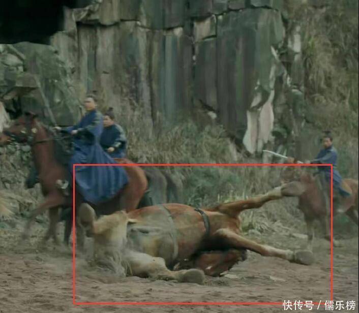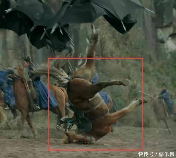 仔细一看网友曝出来的那个镜头,马的前腿先是被牵引绳拉了一下,随后马直接一头栽了下去,脖子和身子几乎呈九十度折叠然后再翻折过去。演员则是吊着威亚,向前扑去。这让人不得不质疑这是剧组特意为之来营造效果的。