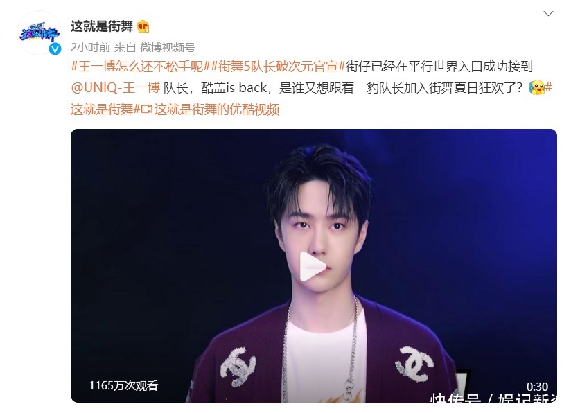 这种官宣的方式真的是太炫酷了,很有有那种街舞的氛围感,对于正片更加期待了。而这条视频在放出之后仅仅两个小时就突破了千万播放量,可想而知网友们对于王一博回归街舞有多么的期待。