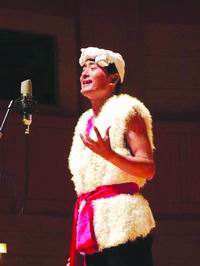 一身羊皮袄,一条白毛巾。初登舞台的阿宝刚一亮相,这副典型的陕北汉子形象,就吸引住了观众的目光。